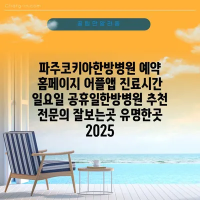 파주코키아한방병원 예약 홈페이지 어플앱 진료시간 일요일 공휴일한방병원 추천 전문의 잘보는곳 유명한곳 2025