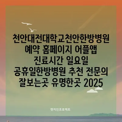 천안대전대학교천안한방병원 예약 홈페이지 어플앱 진료시간 일요일 공휴일한방병원 추천 전문의 잘보는곳 유명한곳 2025