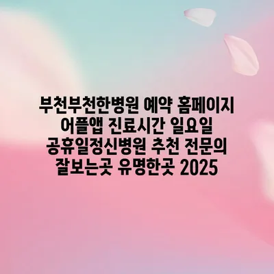 부천부천한병원은 정신과 진료를 위한 추천 전연락가 있는 곳입니다. 특히 예약 홈페이지와 어플앱을 통해 손쉽게 진료를 예약할 수 있어 편리합니다. 이 …