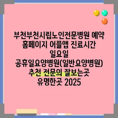 부천더편한소사요양병원 예약 홈페이지 어플앱 진료시간 일요일 공휴일요양병원(일반요양병원) 추천 전문의 잘보는곳 유명한곳 2025