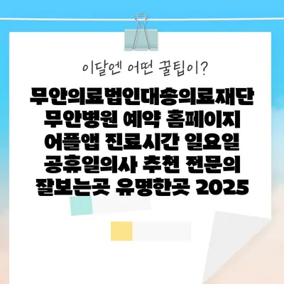 무안의료법인대송의료재단 무안병원은 현대적 시설과 함께 전문적인 진료 서비스를 알려알려드리겠습니다. 2025년에는 더욱 발전된 진료환경과 최고 수준의 의료진을 통해 지역 주민들에게 최상의 …