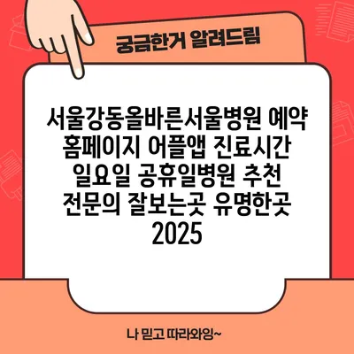 서울강동올바른서울병원은 예약 홈페이지와 어플앱을 통해 간편한 진료 예약을 알려알려드리겠습니다. 토요일과는 달리 일요일이나 공휴일에도 진료를 받을 수 있어 환자들에게 큰 편리함을 …