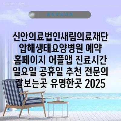 신안의료법인새림의료재단 압해생태요양병원은 편안하고 전문적인 요양 치료를 알려알려드리겠습니다. 예약은 홈페이지나 어플앱을 통해 간편하게 할 수 있어, 많은 환자분들이 이용하고 있습니다. 진료시간은 …