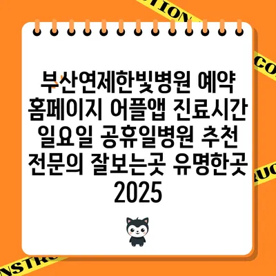부산연제한빛병원 예약 홈페이지와 어플앱을 통해 간편하게 진료를 받을 수 있습니다. 이 병원은 일요일과 공휴일에도 운영되어 바쁜 일상 속에서도 편리하게 방문할 …