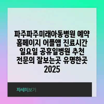 파주파주미래아동병원은 예약 홈페이지와 어플앱을 통해 편리한 진료 예약 서비스를 알려알려드리겠습니다. 특히 진료시간에 대한 정보도 상세하게 공지되어 있어, 일요일과 공휴일에도 환자들에게 …