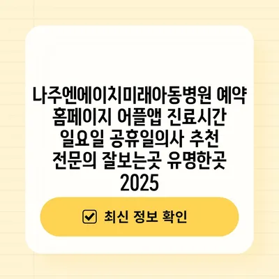 나주엔에이치미래아동병원은 2025년에도 신뢰받는 아동 전문 의료기관으로 자리매김할 것입니다. 예약은 편리한 홈페이지와 어플앱을 통해 언제든지 할 수 있습니다. 진료시간은 평일과 주말에 …