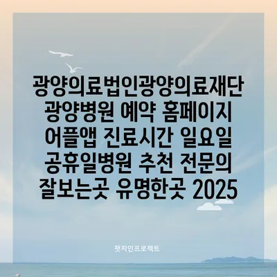 광양의료법인광양의료재단은 환자들의 건강과 행복을 최우선으로 생각하며 운영되는 광양병원입니다. 진료는 월요일부터 토요일까지 진행되며, 일요일과 공휴일에도 응급환자에 대한 진료를 알려알려드리겠습니다. 환자분들은 광양병원의 …