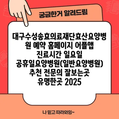 대구수성송효의료재단효산요양병원은 환자 중심의 진료를 제공하는 요양병원으로, 다양한 의료 서비스를 통해 많은 환자들의 사랑을 받고 있습니다. 예약은 홈페이지 및 어플을 통해 …