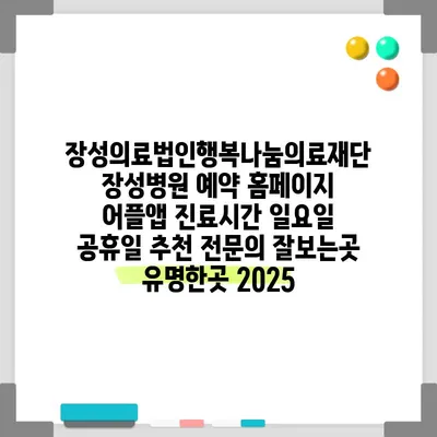 장성의료법인행복나눔의료재단 장성병원은 예약 홈페이지와 어플앱을 통해 간편하게 진료 예약을 할 수 있는 곳입니다. 이 병원은 평일뿐만 아니라 일요일과 공휴일에도 진료를 …
