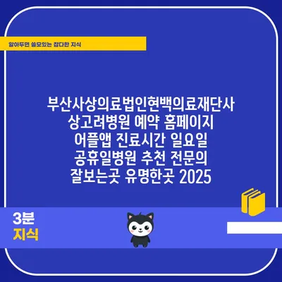 부산사상의료법인현백의료재단사상고려병원은 지역 주민들에게 안전하고 신뢰able한 의료 서비스를 알려알려드리겠습니다. 예약은 홈페이지와 어플리케이션을 통해 간편하게 진행할 수 있어, 바쁜 일상 속에서도 손쉽게 …