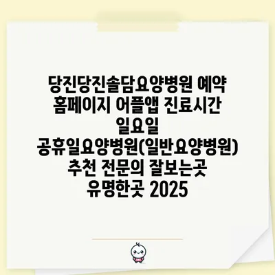 당진당진솔담요양병원 예약 홈페이지는 효율적인 예약 시스템을 알려드려 많은 환자들이 편리하게 이용하고 있습니다. 이 병원의 진료시간은 평일과 주말 모두 환자들이 쉽게 …