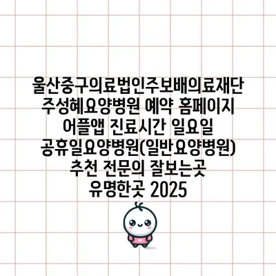 울산중구의료법인주보배의료재단의 주성혜요양병원은 믿을 수 있는 요양병원으로, 환자 중심의 최상의 의료 서비스를 알려알려드리겠습니다. 예약은 홈페이지 또는 어플앱을 통해 간편하게 진행할 수 …