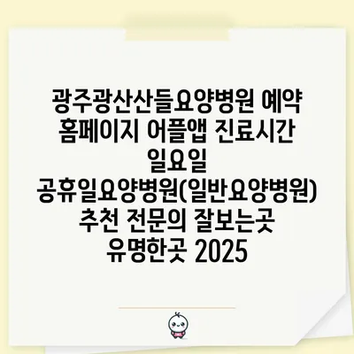 광주광산산들요양병원은 예약 홈페이지와 어플앱을 통해 간편하게 진료 예약을 할 수 있습니다. 이곳은 일요일과 공휴일에도 운영되어, 필요할 때 언제든지 방문할 수 …