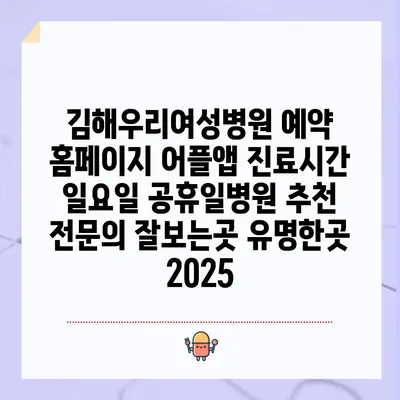 김해우리여성병원은 예약 홈페이지와 어플앱을 통해 편리하게 진료를 받을 수 있는 곳입니다. 이 병원은 일요일과 공휴일에도 운영되어, 바쁜 일상 속에서도 필요한 …