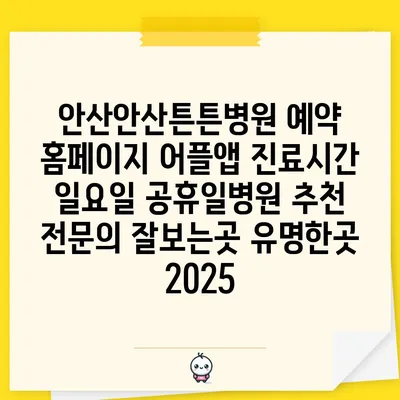 안산안산튼튼병원은 예약 홈페이지와 어플앱을 통해 편리한 진료 예약이 할 수 있습니다. 이 병원은 진료시간이 유연하여, 바쁜 일상 속에서도 쉽게 방문할 …
