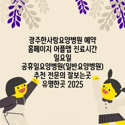 광주한사랑요양병원은 예약 홈페이지와 어플앱을 통해 편리한 진료 예약 서비스를 제공하고 있습니다. 일요일과 공휴일에도 운영되는 이 병원은, 일반요양병원으로서 신뢰할 수 있는 …