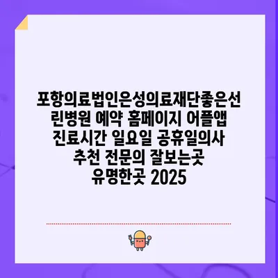 포항의료법인은성의료재단좋은선린병원 예약 홈페이지와 어플앱을 통해 간편하게 진료를 예약할 수 있습니다. 병원은 전문 의료진이 상주하며, 다양한 분야의 전연락들이 상담과 진료를 알려알려드리겠습니다. …