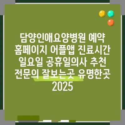 담양인애요양병원은 예약 홈페이지와 어플앱을 통해 간편하게 진료 예약을 할 수 있는 곳입니다. 의료 서비스를 이용하기 원하는 환자분들은 직관적인 인터페이스 덕분에 …
