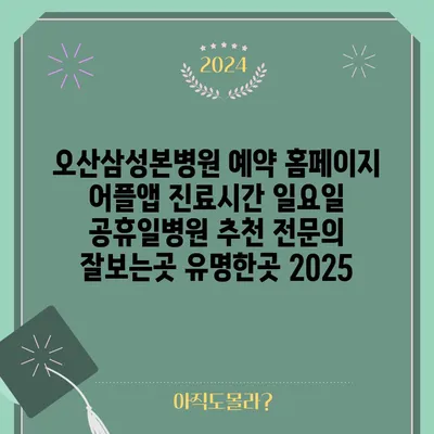 오산삼성본병원 예약 홈페이지 어플앱 진료시간 일요일 공휴일병원 추천 전문의 잘보는곳 유명한곳 2025