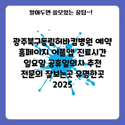 광주북구동림허바킴병원은 2025년에도 전문적인 진료와 편리한 예약 시스템으로 많은 환자들에게 사랑받고 있습니다. 이 병원은 예약 홈페이지와 모바일 어플리케이션을 통해 손쉽게 진료 …