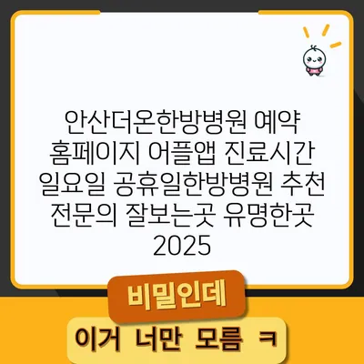 안산더온한방병원은 예약 홈페이지와 어플앱을 통해 편리하게 진료 예약을 할 수 있는 곳입니다. 진료 시간은 일요일과 공휴일에도 운영되어 더욱 편리합니다. 이곳은 …