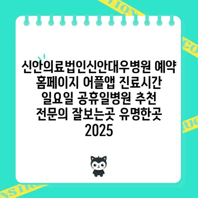 신안의료법인신안대우병원은 예약 홈페이지와 어플앱을 통해 쉽고 간편하게 진료 예약을 할 수 있는 곳입니다. 병원의 진료시간은 평일과 주말을 포함하여 다양한 스케줄을 …