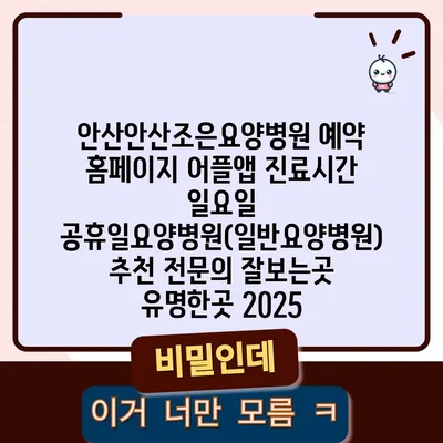 안산안산조은요양병원 예약 홈페이지 어플앱 진료시간 일요일 공휴일요양병원(일반요양병원) 추천 전문의 잘보는곳 유명한곳 2025