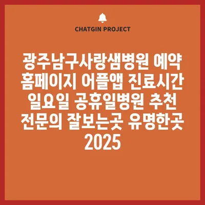 광주남구사랑샘병원은 예약 홈페이지와 어플앱을 통해 쉽고 빠르게 진료를 예약할 수 있습니다. 병원의 진료시간은 평일에만 국한되지 않으며, 일요일과 공휴일에도 운영합니다. 따라서 …