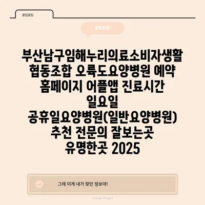 부산남구임해누리의료소비자생활협동조합의 오륙도요양병원은 편리한 예약 홈페이지와 어플앱을 통해 환자와 보호자가 쉽게 예약할 수 있습니다. 진료시간은 평일과 주말이 다르므로, 일요일과 공휴일의 진료 …