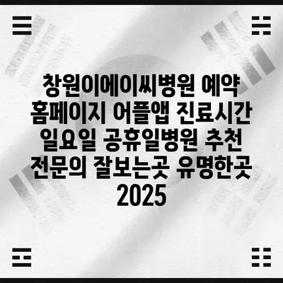 창원이에이씨병원은 여러분의 건강을 최우선으로 생각합니다. 예약 홈페이지와 어플 앱을 통해 언제 어디서나 간편하게 진료를 예약할 수 있습니다. 우리 병원의 진료시간은 …