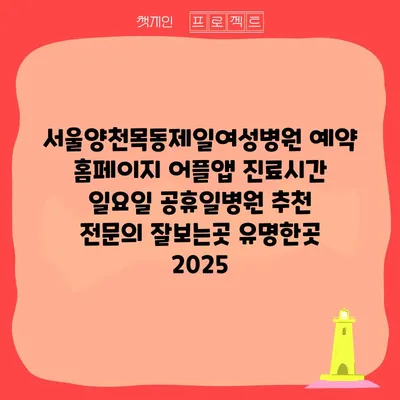 서울양천목동제일여성병원은 2025년에도 전문적인 여성 건강 관리로 많은 사람들에게 추천받는 병원입니다. 이 병원은 예약 홈페이지와 어플 앱을 통해 간편하게 진료를 예약할 …