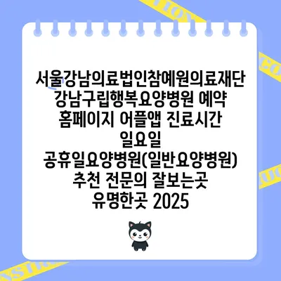 서울강남의료법인참예원의료재단강남구립행복요양병원은 일반요양병원으로서, 환자와 가족을 위한 최적의 환경을 알려알려드리겠습니다. 병원의 예약 홈페이지와 어플 앱을 통해 간편하게 진료 예약을 할 수 있으며, …