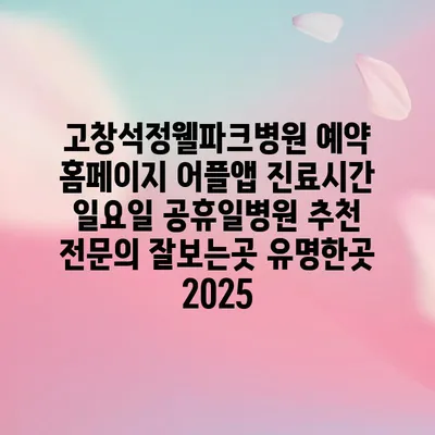 고창석정웰파크병원 예약 홈페이지 어플앱 진료시간 일요일 공휴일병원 추천 전문의 잘보는곳 유명한곳 2025