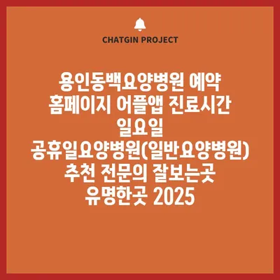 용인동백요양병원은 2025년에도 신뢰할 수 있는 일반요양병원으로 자리매김할 것입니다. 특히, 환자들의 편의를 위해 예약 홈페이지와 어플리케이션을 통해 간편하게 진료 예약이 할 …