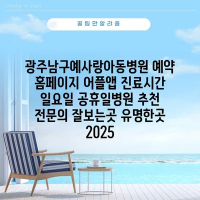 광주남구예사랑아동병원은 예약 홈페이지와 어플앱을 통해 편리한 진료 예약을 제공하고 있습니다. 이곳의 진료시간은 일반적으로 평일에 운영되며, 일요일과 공휴일에도 진료가 가능한 병원으로 …