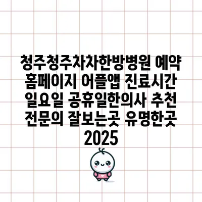 청주청주차차한방병원 예약 홈페이지 어플앱 진료시간 일요일 공휴일한의사 추천 전문의 잘보는곳 유명한곳 2025