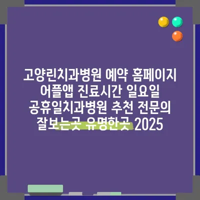 고양린치과병원 예약 홈페이지 어플앱 진료시간 일요일 공휴일치과병원 추천 전문의 잘보는곳 유명한곳 2025
