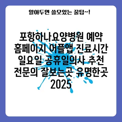 포항하나요양병원은 예약 홈페이지와 어플앱을 통해 쉽고 편리하게 진료를 예약할 수 있습니다. 진료시간은 일반적으로 평일에 운영되며, 일요일 및 공휴일에도 진료를 받길 …