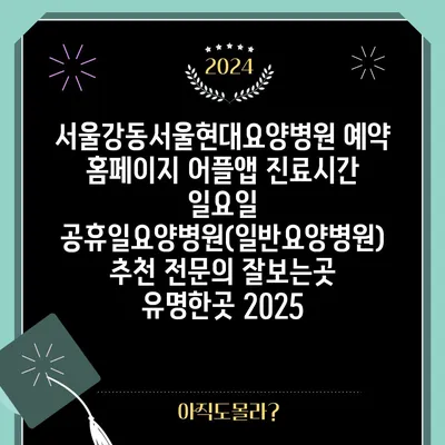 서울강동서울현대요양병원 예약 홈페이지 어플앱 진료시간 일요일 공휴일요양병원(일반요양병원) 추천 전문의 잘보는곳 유명한곳 2025