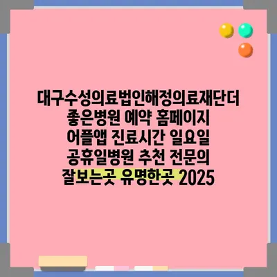 대구수성의료법인해정의료재단더좋은병원은 환자 중심의 진료를 제공하는 병원입니다. 편리한 예약 홈페이지와 어플앱을 통해 언제 어디서나 손쉽게 진료 예약을 할 수 있습니다. 진료시간은 …