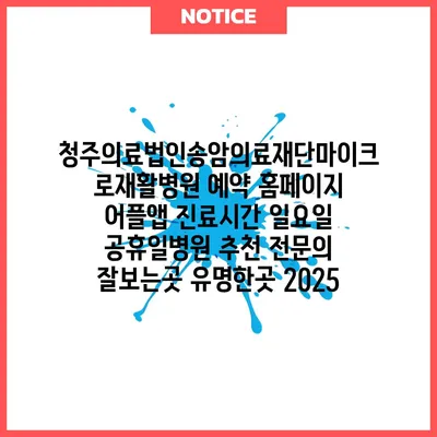 청주의료법인송암의료재단마이크로재활병원 예약 홈페이지 어플앱 진료시간 일요일 공휴일병원 추천 전문의 잘보는곳 유명한곳 2025