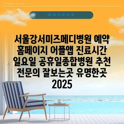 서울강서미즈메디병원은 예약 홈페이지와 어플앱을 통해 쉽고 간편하게 진료 일정을 잡을 수 있습니다. 진료시간은 평일에는 물론, 일요일과 공휴일에도 운영되어 많은 환자들에게 …