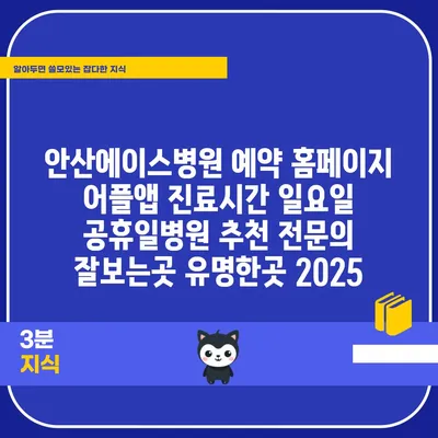 안산에이스병원은 예약 홈페이지와 어플앱 서비스를 통해 손쉽게 진료 예약을 할 수 있습니다. 병원은 진료시간이 유연하여, 특히 일요일과 공휴일에도 이용이 가능하다는 …