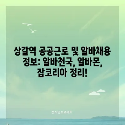 상갈역 홈페이지 일자리 알바천국 지원센터 알바몬 공공근로 잡코리아 채용공고 상갈역 홈페이지 일자리에서는 여러 가지 구인 정보를 제공하고 있습니다. 지역 내에서 …