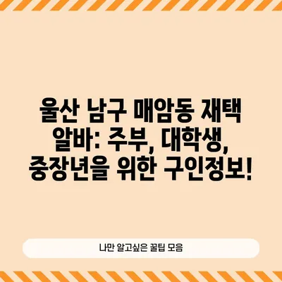 울산 남구 매암동 알바천국 홈페이지 일자리 주부 재택 부업 대학생 노인 중장년 청소년 구인구직 울산 남구 매암동의 다양한 구인구직 정보 …