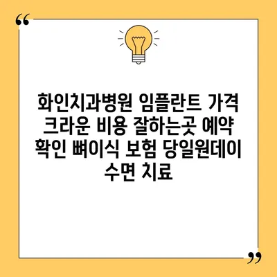 화인치과병원 임플란트 가격 크라운 비용 잘하는곳 예약 확인 뼈이식 보험 당일원데이 수면 치료