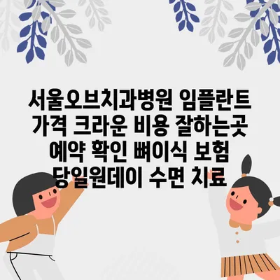서울오브치과병원 임플란트 가격 크라운 비용 잘하는곳 예약 확인 뼈이식 보험 당일원데이 수면 치료
