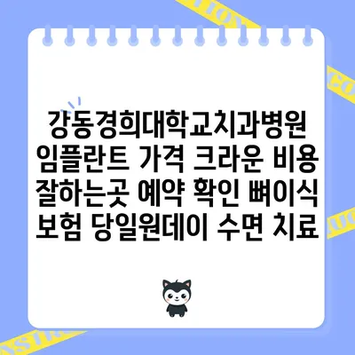 강동경희대학교치과병원 임플란트 가격 크라운 비용 잘하는곳 예약 확인 뼈이식 보험 당일원데이 수면 치료