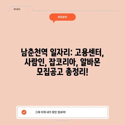 남춘천역 일자리 홈페이지 채용정보 고용센터 사람인 잡코리아 알바몬 알바천국 모집공고 남춘천역 일자리 홈페이지를 통한 채용정보 탐색 남춘천역 일자리 홈페이지는 지역 …