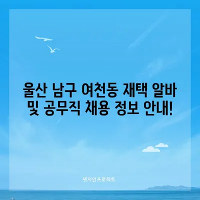 울산 남구 여천동 일자리 취업 채용 고용센터 재택알바 부업 사람인 교차로 공무직 구직안내 울산 남구 여천동의 최신 일자리 정보 울산 …